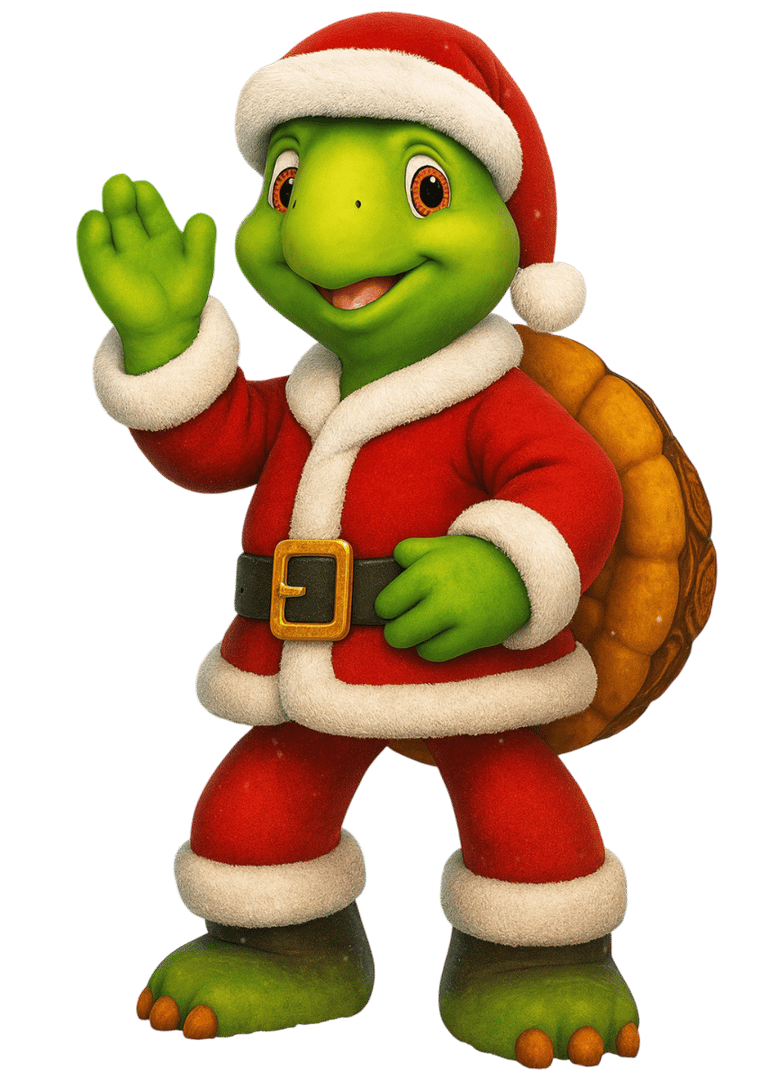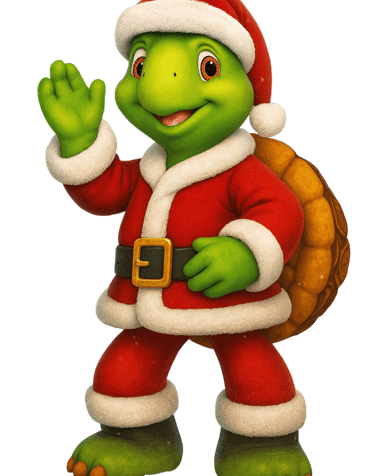 Franklin the Santa is a cheerful, gift-giving turtle spreading holiday magic, joy, and festive spirit across the community.